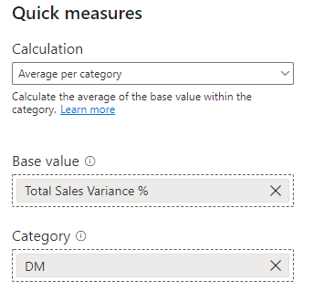 However, after viewing this data now we are now thinking about the average variance throughout the entire year for each manager. Which of these three managers is performing the best in relation to their expected sales? Even though there is no variable in the dataset for average total sales variance, we can easily calculate one using PowerBI’s “Quick Measures” tool.